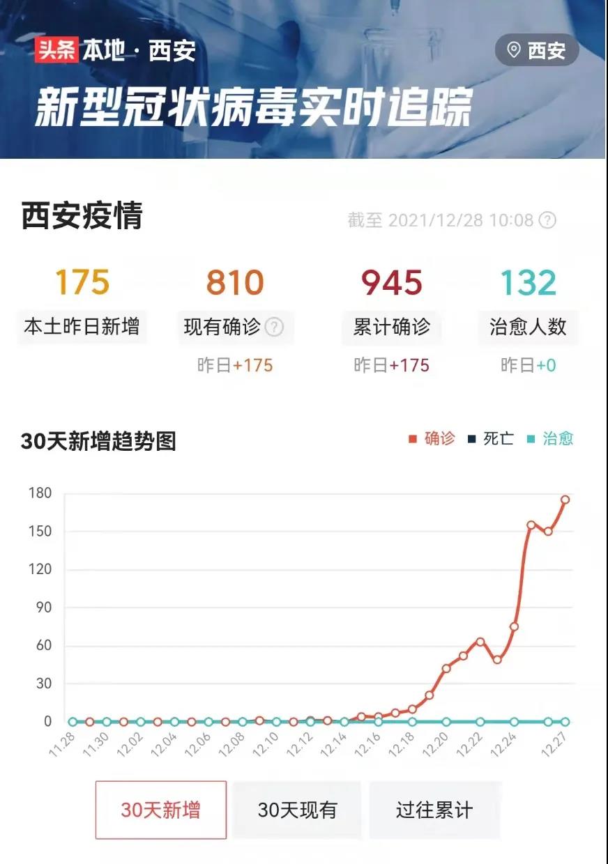 据陕西卫健委通报,12月27日0-24时,新增报告本土确诊病例180例(西安市175例、咸阳市3例、延安市2例)。自12月9日以来,陕西省累计报告本土确诊病例831例。自12月9日至27日,陕西省西安市累计报告新冠肺炎本土确诊病例810例,25日、26日、27日连续三天,西安市单日新增确诊病例破百,分别确诊157例、152例和175例。面对来势汹汹的新冠病毒,对西安这座千年古都造成了很大的防控压力。